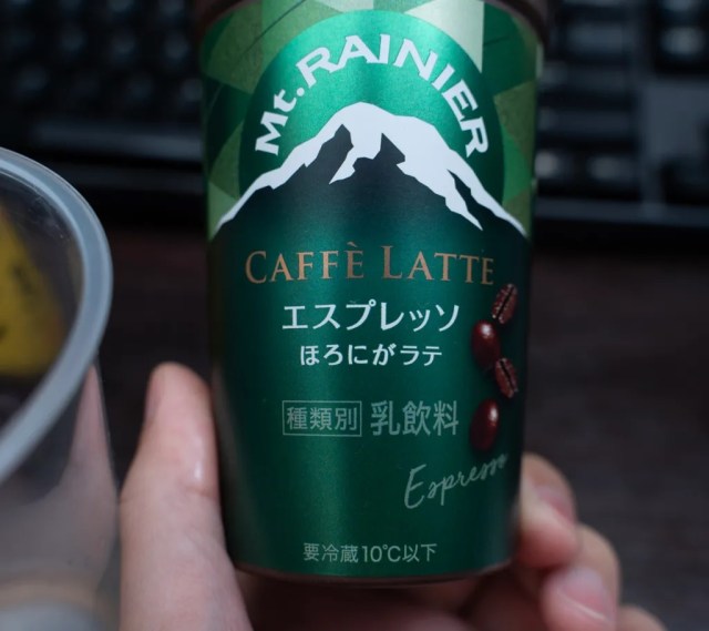 Next up, a Mt. Rainier-brand caffe latte, which, in Tasuku’s experience, is milkier than Tully’s.