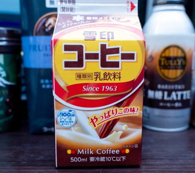 Kadoya Seiyu didn’t recommend any specific brand of milk coffee, so Tasuku decided on Yukijirushi/Snow Brand, one of Japan’s most popular and long-selling ready-made milk coffees. First he poured himself a cup of coffee, as he usually would…